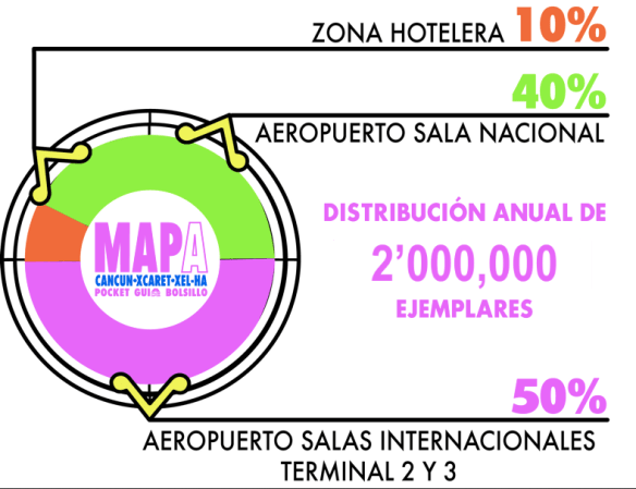 Con dos millones de ejemplares anuales -certificado por el Instituto Verificador de Medios- MAPA se distribuye gratis en el Aeropuerto Internacional de Cancún (salas nacional e internacional), así como en arrendadoras de automóviles, centros de información y hoteles. El compromiso de MAPA, es brindar al turista referencias de servicios como: centros de hospedaje, restaurantes, centros comerciales, marinas, tours, opciones de diversión y atracciones turísticas.