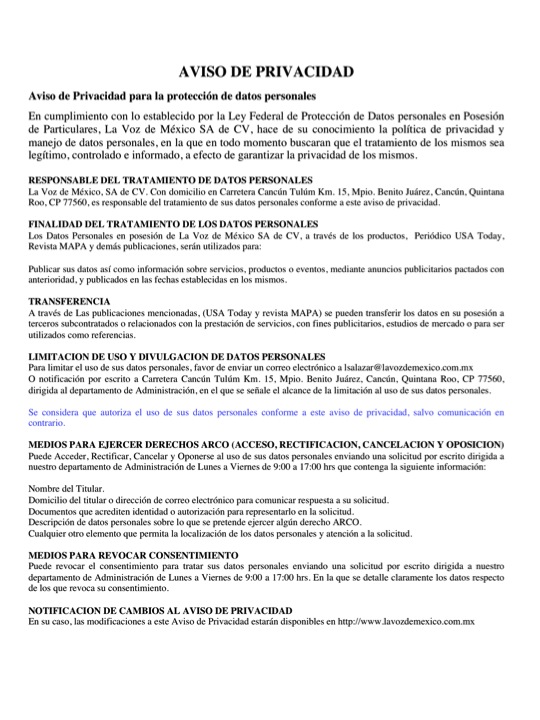 Declaración de Privacía Publicado el Vie, 02 Nov 2012 14:26:48 -0600 a 540 × 720 en Aviso de Privacía Declaración de Privacidad Me gusta Cargando...